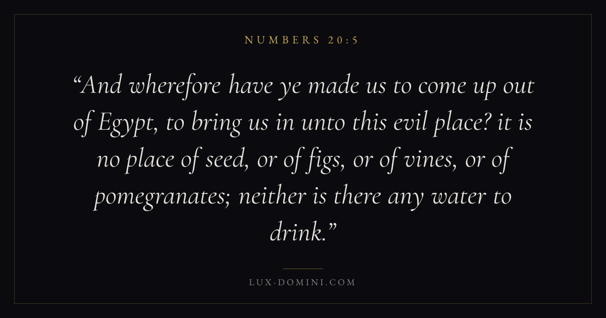 And wherefore have ye made us to come up out of Egypt, to bring us in unto this evil place? it is no place of seed, or of figs, or of vines, or of pomegranates; neither is there any water to drink.