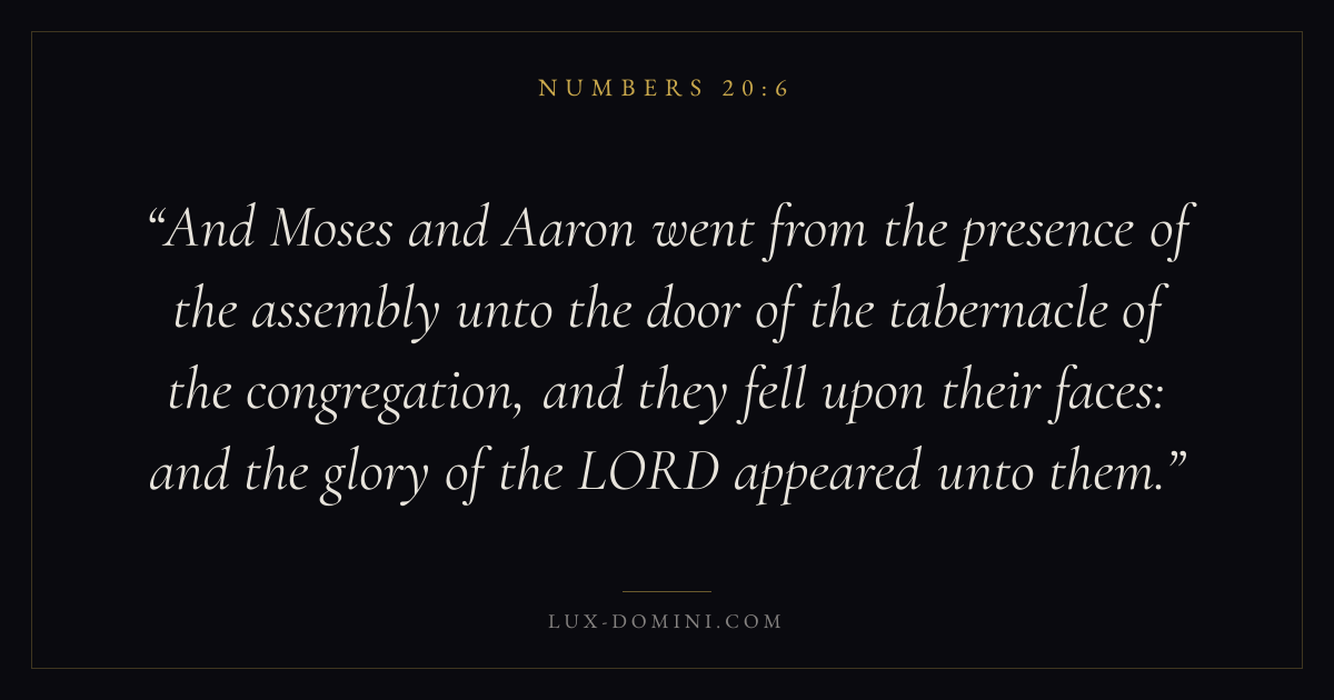 And Moses and Aaron went from the presence of the assembly unto the door of the tabernacle of the congregation, and they fell upon their faces: and the glory of the LORD appeared unto them.