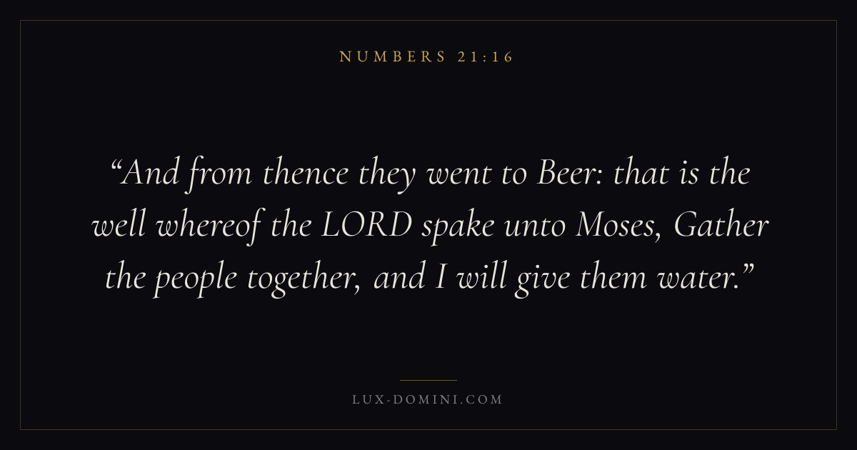 And from thence they went to Beer: that is the well whereof the LORD spake unto Moses, Gather the people together, and I will give them water.