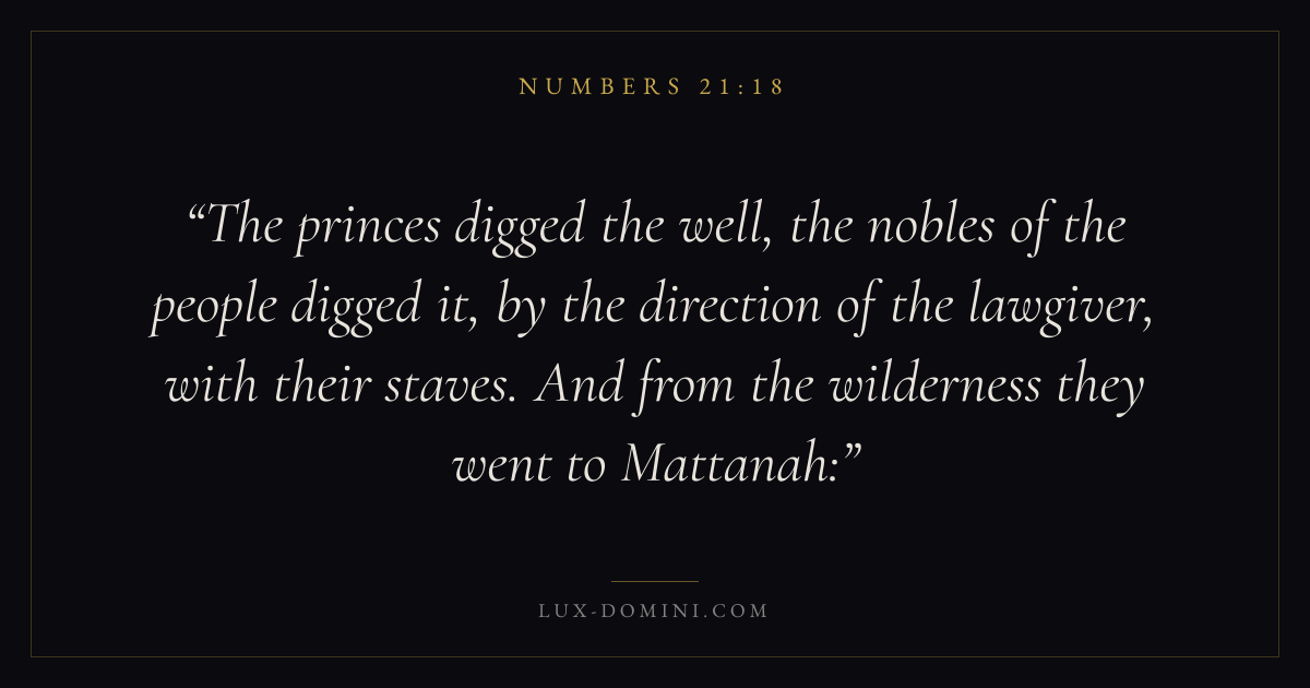 The princes digged the well, the nobles of the people digged it, by the direction of the lawgiver, with their staves. And from the wilderness they went to Mattanah:
