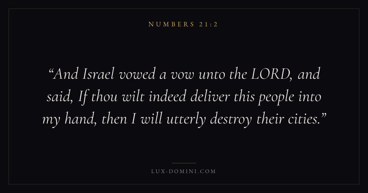 And Israel vowed a vow unto the LORD, and said, If thou wilt indeed deliver this people into my hand, then I will utterly destroy their cities.