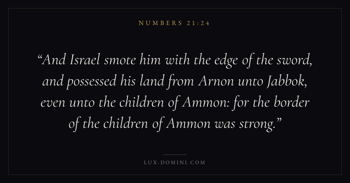 And Israel smote him with the edge of the sword, and possessed his land from Arnon unto Jabbok, even unto the children of Ammon: for the border of the children of Ammon was strong.