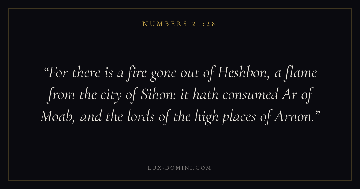For there is a fire gone out of Heshbon, a flame from the city of Sihon: it hath consumed Ar of Moab, and the lords of the high places of Arnon.