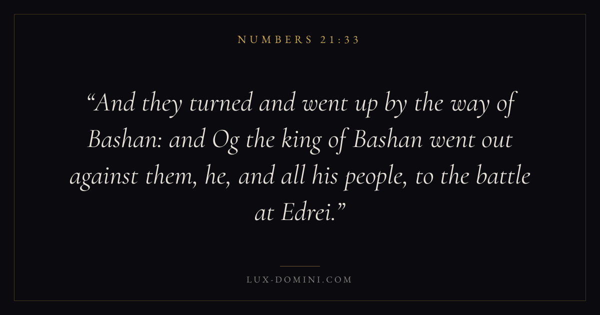 And they turned and went up by the way of Bashan: and Og the king of Bashan went out against them, he, and all his people, to the battle at Edrei.
