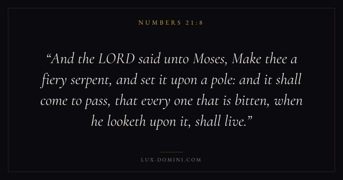 And the LORD said unto Moses, Make thee a fiery serpent, and set it upon a pole: and it shall come to pass, that every one that is bitten, when he looketh upon it, shall live.