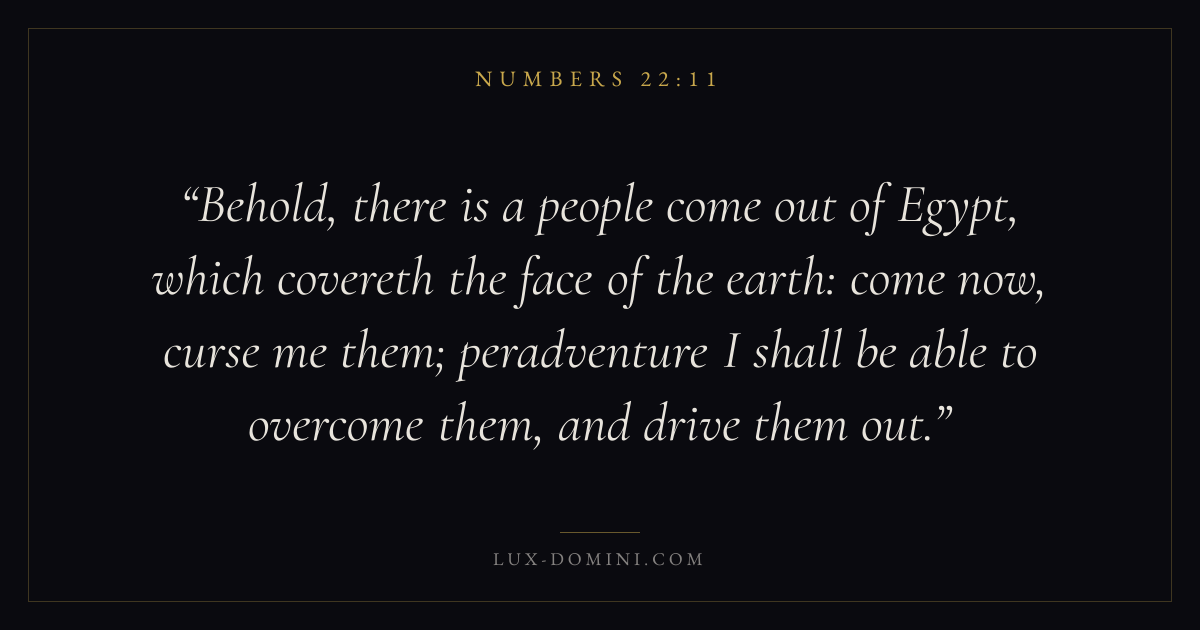 Behold, there is a people come out of Egypt, which covereth the face of the earth: come now, curse me them; peradventure I shall be able to overcome them, and drive them out.
