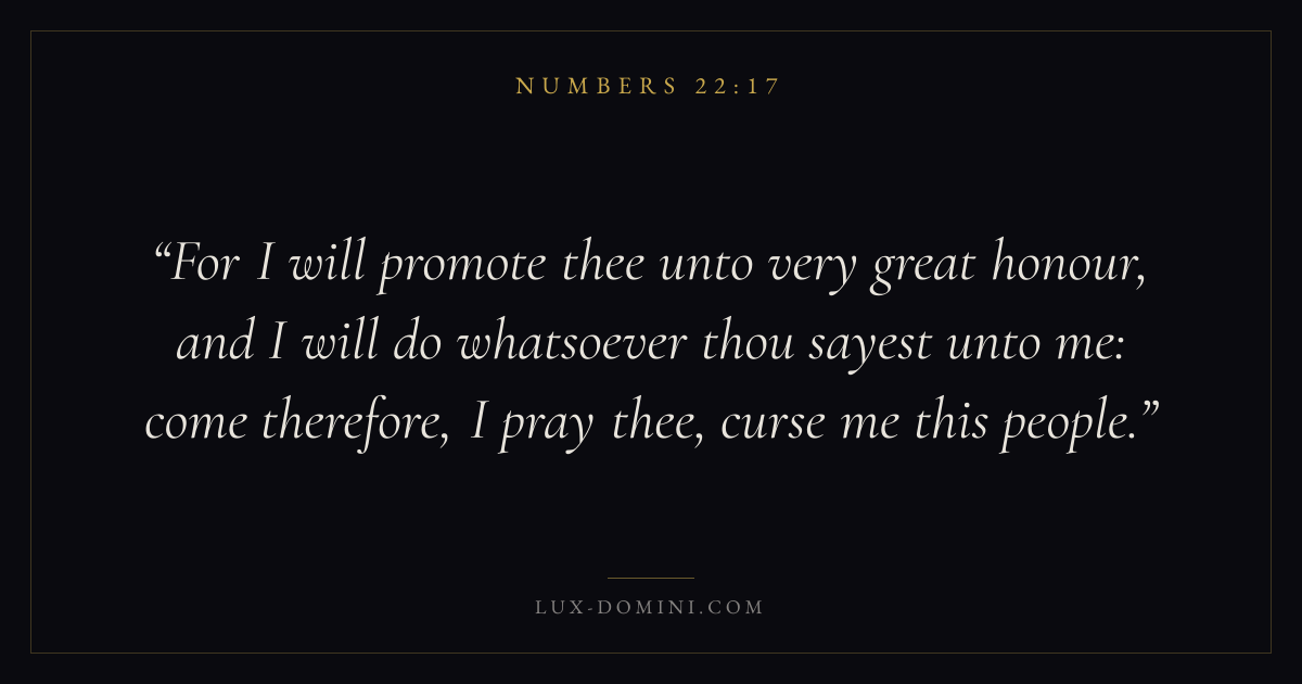 For I will promote thee unto very great honour, and I will do whatsoever thou sayest unto me: come therefore, I pray thee, curse me this people.