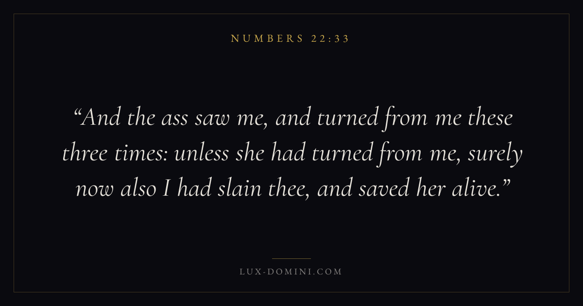 And the ass saw me, and turned from me these three times: unless she had turned from me, surely now also I had slain thee, and saved her alive.