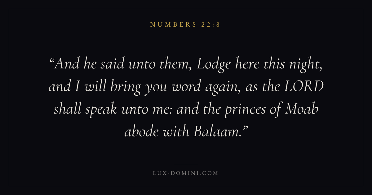 And he said unto them, Lodge here this night, and I will bring you word again, as the LORD shall speak unto me: and the princes of Moab abode with Balaam.