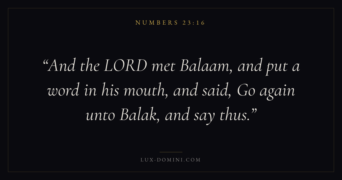 And the LORD met Balaam, and put a word in his mouth, and said, Go again unto Balak, and say thus.