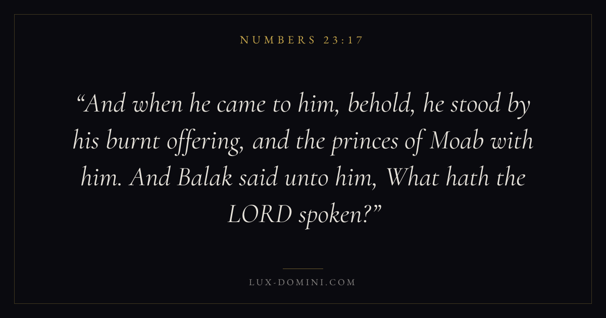 And when he came to him, behold, he stood by his burnt offering, and the princes of Moab with him. And Balak said unto him, What hath the LORD spoken?