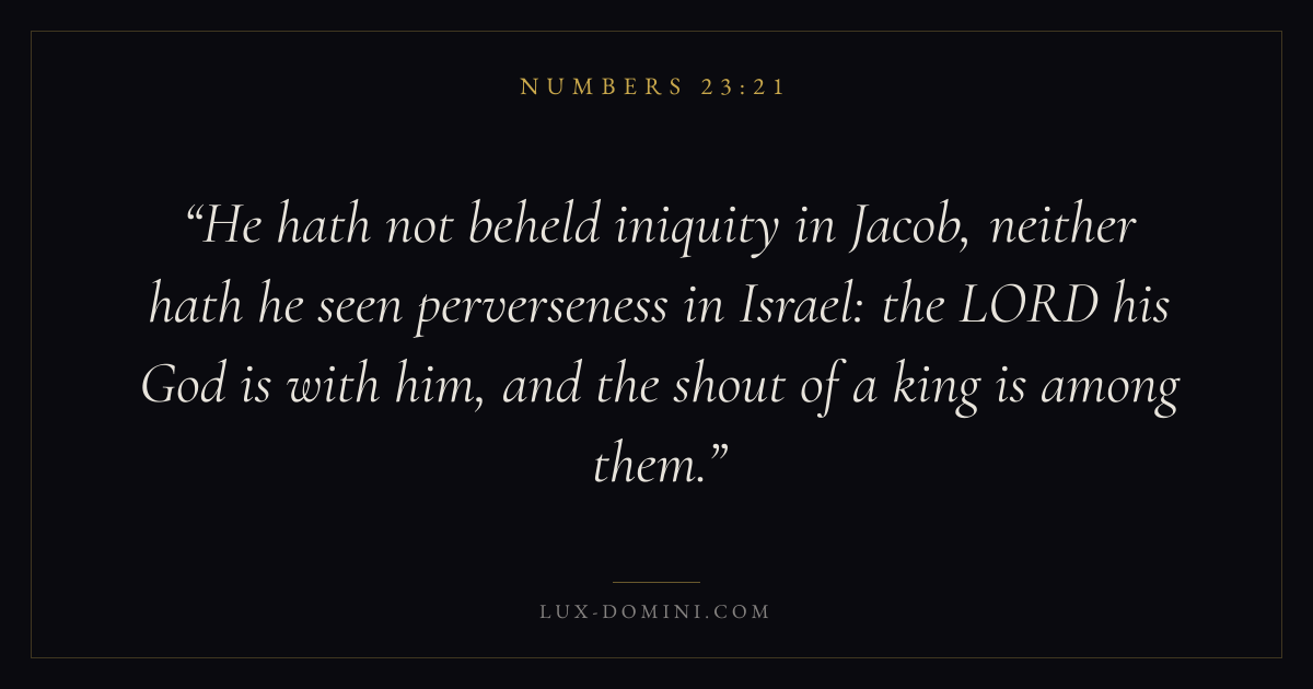 He hath not beheld iniquity in Jacob, neither hath he seen perverseness in Israel: the LORD his God is with him, and the shout of a king is among them.