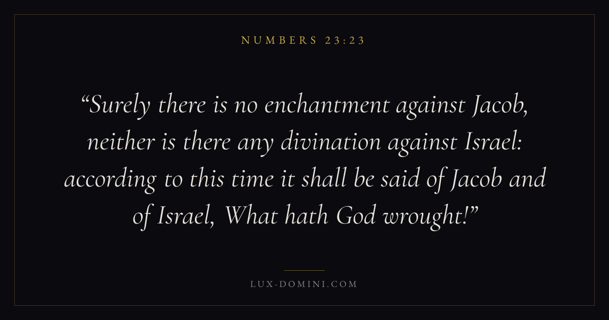 Surely there is no enchantment against Jacob, neither is there any divination against Israel: according to this time it shall be said of Jacob and of Israel, What hath God wrought!