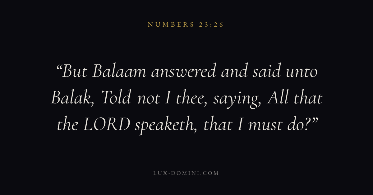But Balaam answered and said unto Balak, Told not I thee, saying, All that the LORD speaketh, that I must do?