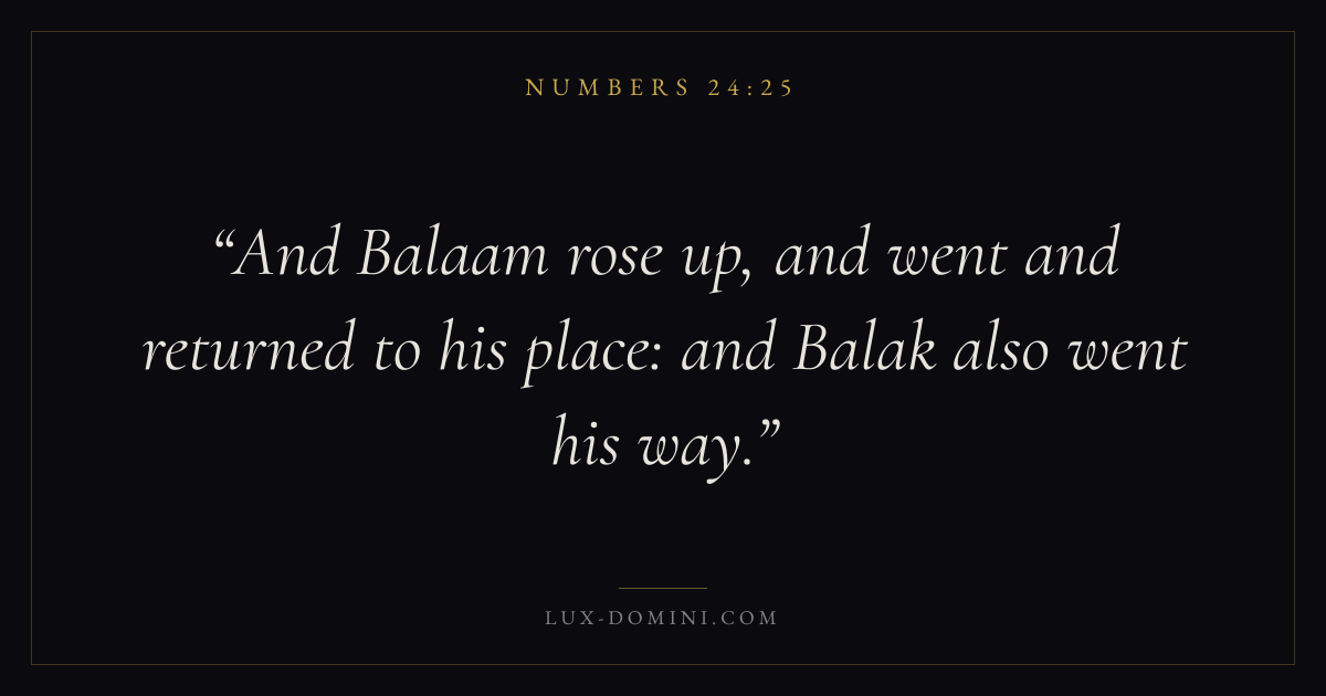 And Balaam rose up, and went and returned to his place: and Balak also went his way.