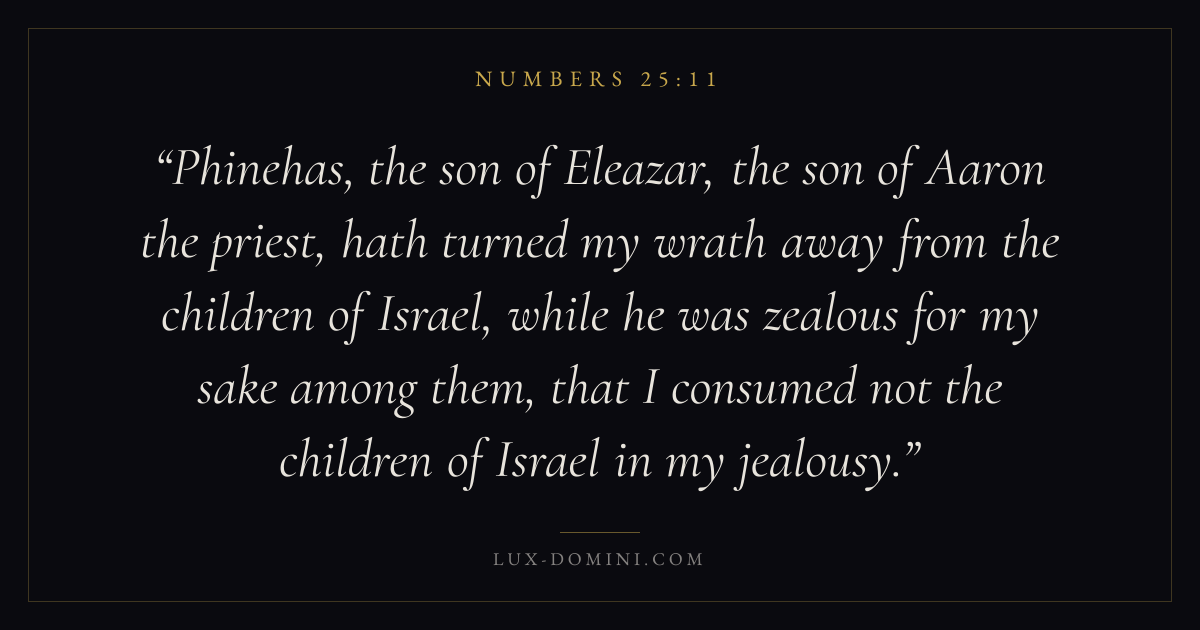 Phinehas, the son of Eleazar, the son of Aaron the priest, hath turned my wrath away from the children of Israel, while he was zealous for my sake among them, that I consumed not the children of Israel in my jealousy.