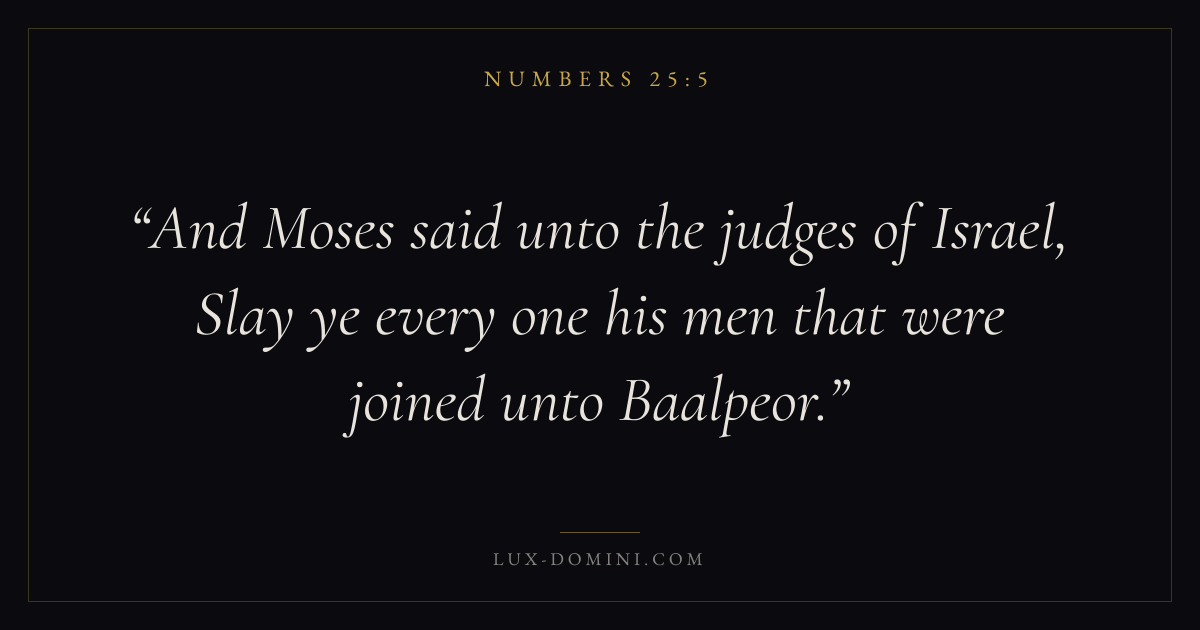 And Moses said unto the judges of Israel, Slay ye every one his men that were joined unto Baalpeor.