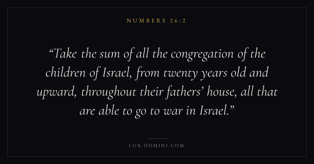 Take the sum of all the congregation of the children of Israel, from twenty years old and upward, throughout their fathers’ house, all that are able to go to war in Israel.