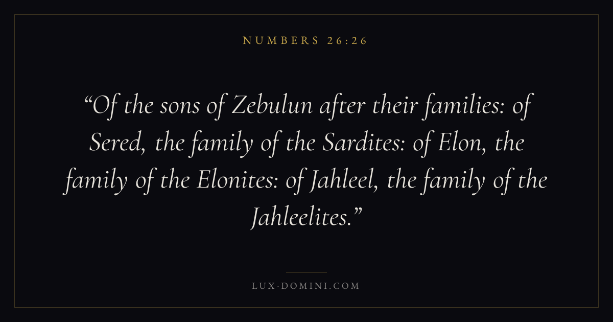 Of the sons of Zebulun after their families: of Sered, the family of the Sardites: of Elon, the family of the Elonites: of Jahleel, the family of the Jahleelites.
