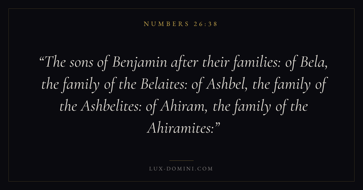 The sons of Benjamin after their families: of Bela, the family of the Belaites: of Ashbel, the family of the Ashbelites: of Ahiram, the family of the Ahiramites: