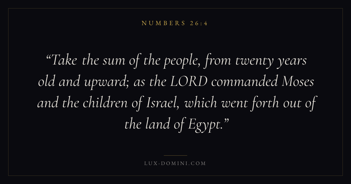 Take the sum of the people, from twenty years old and upward; as the LORD commanded Moses and the children of Israel, which went forth out of the land of Egypt.