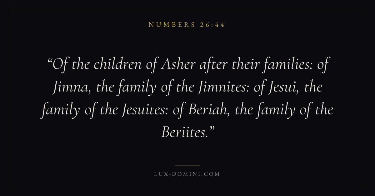 Of the children of Asher after their families: of Jimna, the family of the Jimnites: of Jesui, the family of the Jesuites: of Beriah, the family of the Beriites.