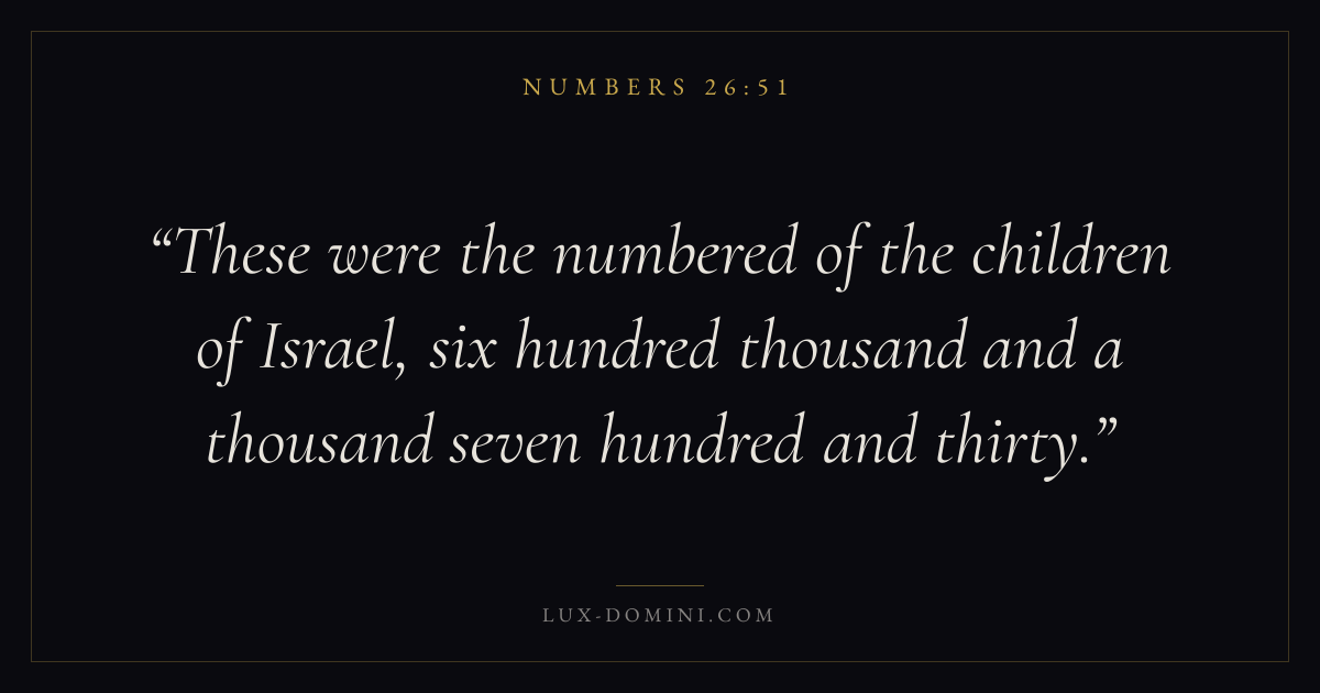 These were the numbered of the children of Israel, six hundred thousand and a thousand seven hundred and thirty.