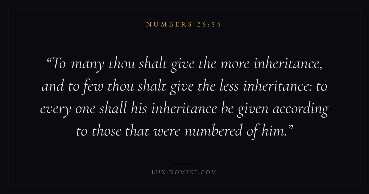 To many thou shalt give the more inheritance, and to few thou shalt give the less inheritance: to every one shall his inheritance be given according to those that were numbered of him.
