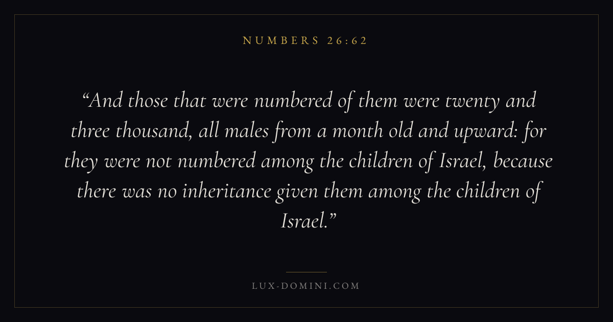 And those that were numbered of them were twenty and three thousand, all males from a month old and upward: for they were not numbered among the children of Israel, because there was no inheritance given them among the children of Israel.