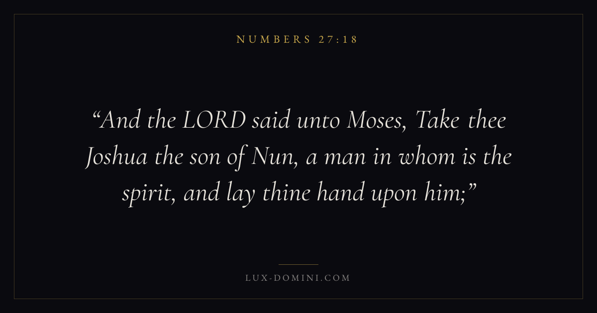 And the LORD said unto Moses, Take thee Joshua the son of Nun, a man in whom is the spirit, and lay thine hand upon him;