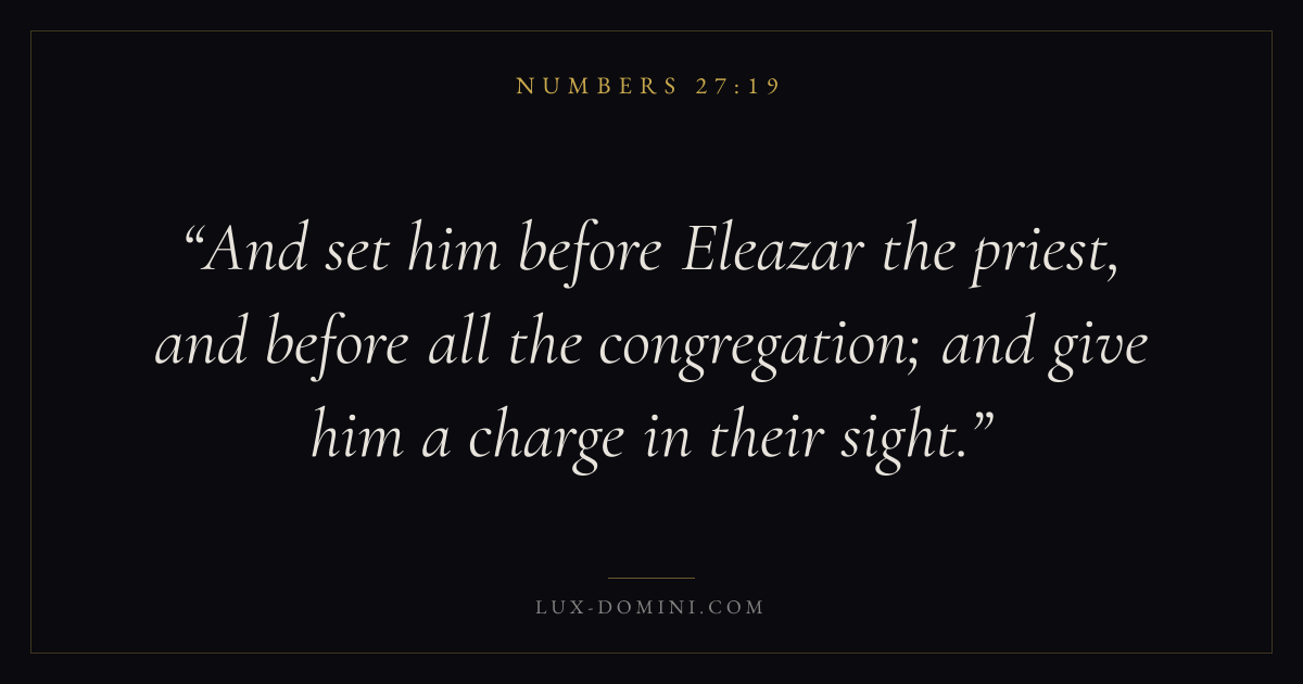 And set him before Eleazar the priest, and before all the congregation; and give him a charge in their sight.