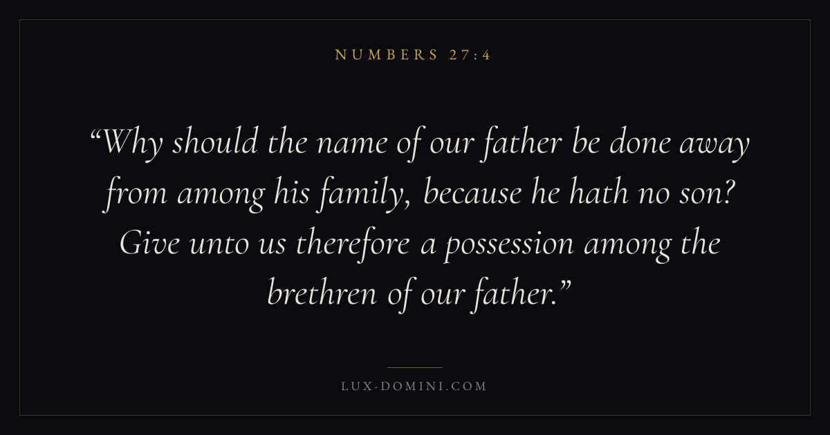 Why should the name of our father be done away from among his family, because he hath no son? Give unto us therefore a possession among the brethren of our father.