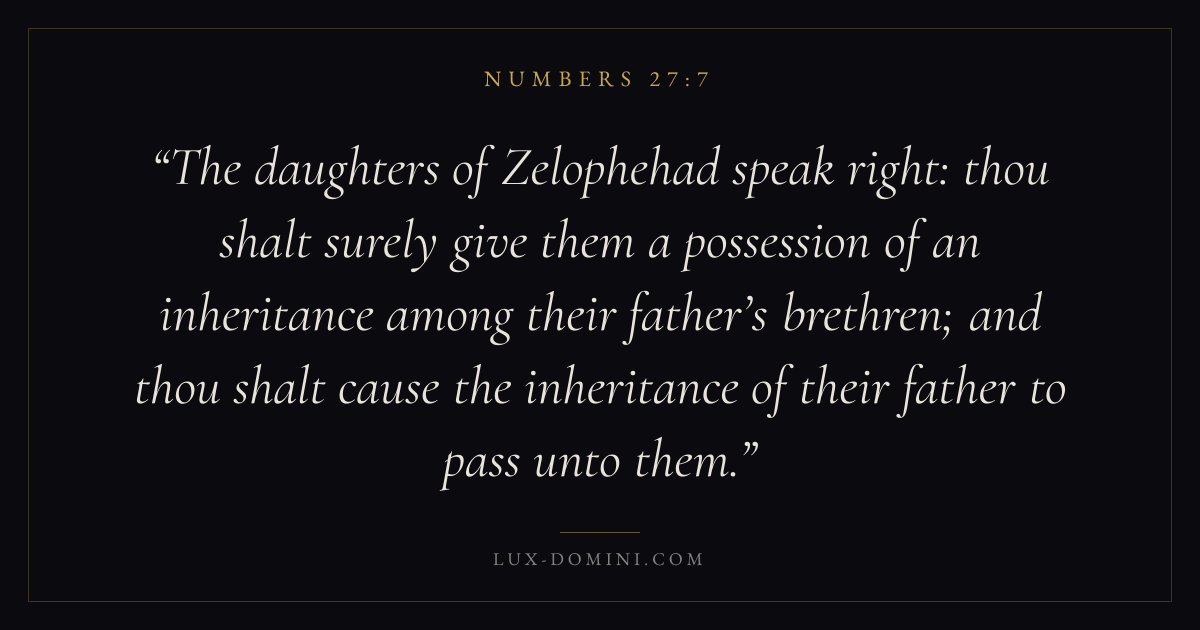 The daughters of Zelophehad speak right: thou shalt surely give them a possession of an inheritance among their father’s brethren; and thou shalt cause the inheritance of their father to pass unto them.