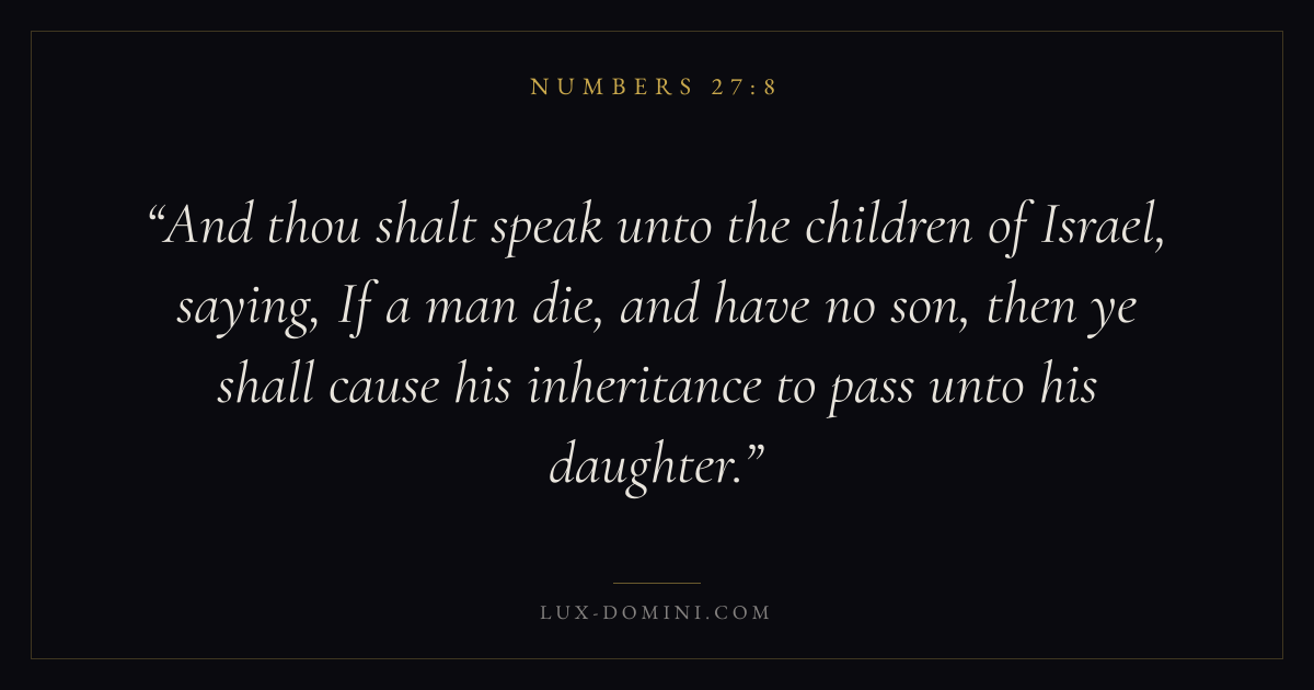 And thou shalt speak unto the children of Israel, saying, If a man die, and have no son, then ye shall cause his inheritance to pass unto his daughter.