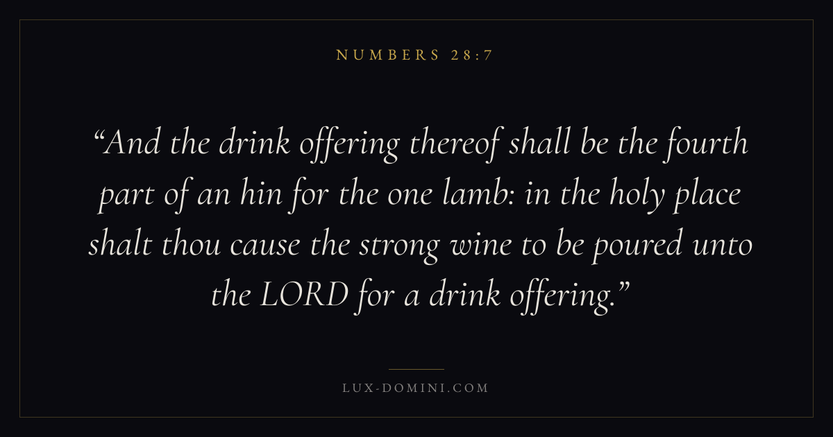 And the drink offering thereof shall be the fourth part of an hin for the one lamb: in the holy place shalt thou cause the strong wine to be poured unto the LORD for a drink offering.