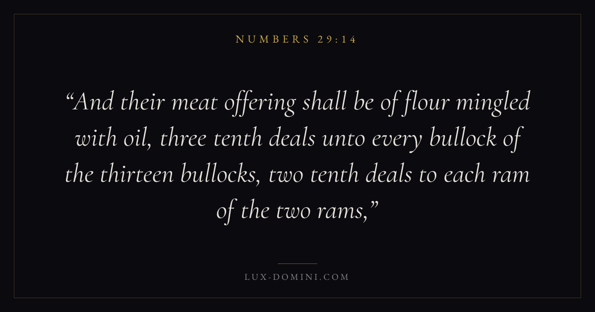 And their meat offering shall be of flour mingled with oil, three tenth deals unto every bullock of the thirteen bullocks, two tenth deals to each ram of the two rams,