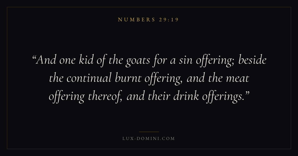And one kid of the goats for a sin offering; beside the continual burnt offering, and the meat offering thereof, and their drink offerings.