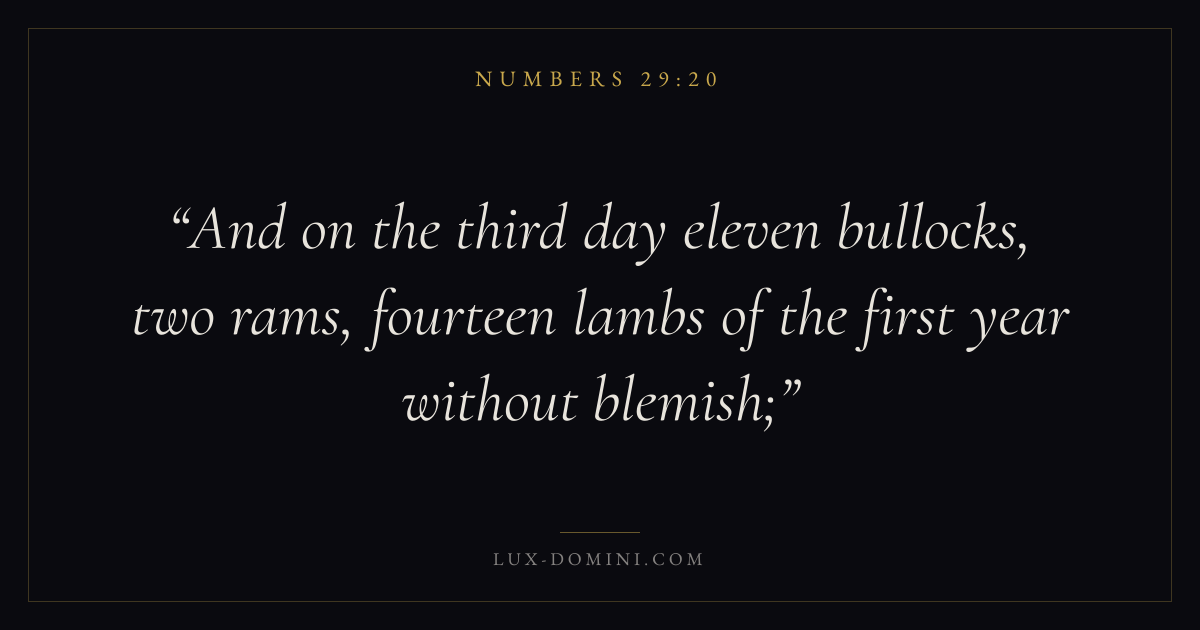And on the third day eleven bullocks, two rams, fourteen lambs of the first year without blemish;