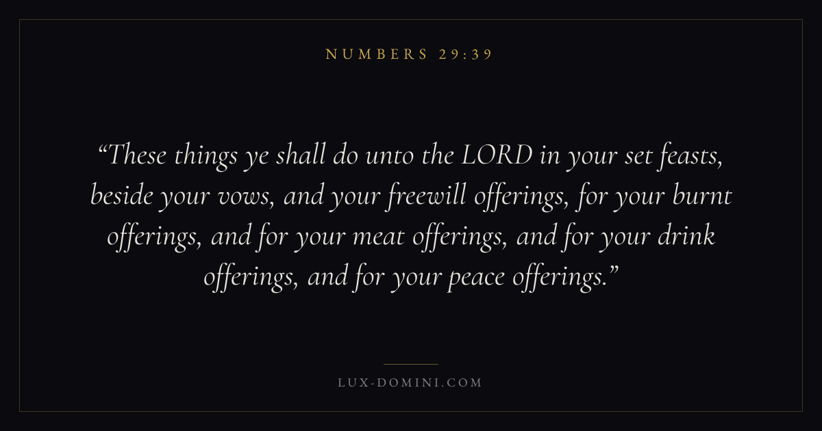 These things ye shall do unto the LORD in your set feasts, beside your vows, and your freewill offerings, for your burnt offerings, and for your meat offerings, and for your drink offerings, and for your peace offerings.