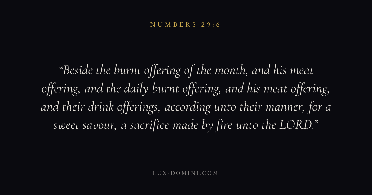 Beside the burnt offering of the month, and his meat offering, and the daily burnt offering, and his meat offering, and their drink offerings, according unto their manner, for a sweet savour, a sacrifice made by fire unto the LORD.