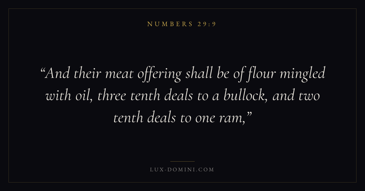And their meat offering shall be of flour mingled with oil, three tenth deals to a bullock, and two tenth deals to one ram,