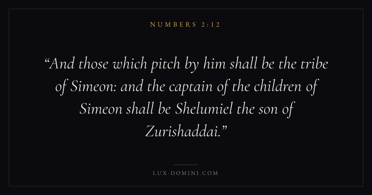 And those which pitch by him shall be the tribe of Simeon: and the captain of the children of Simeon shall be Shelumiel the son of Zurishaddai.