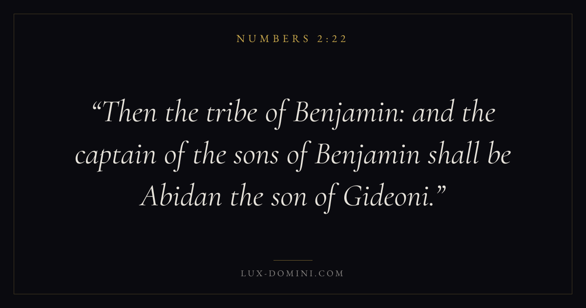 Then the tribe of Benjamin: and the captain of the sons of Benjamin shall be Abidan the son of Gideoni.