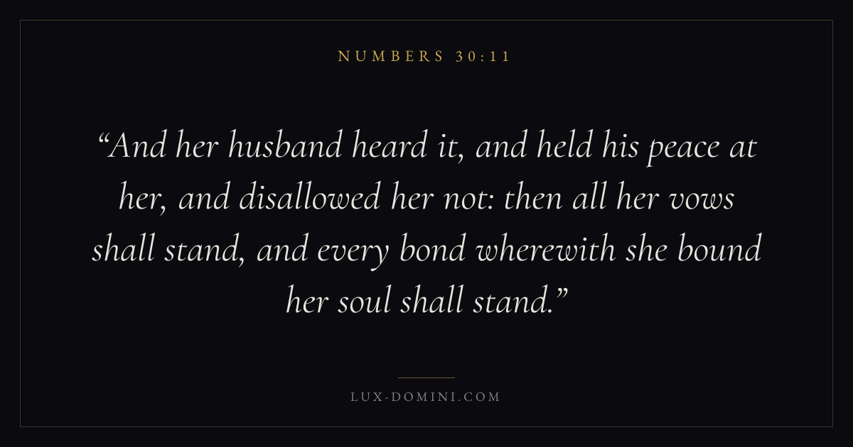 And her husband heard it, and held his peace at her, and disallowed her not: then all her vows shall stand, and every bond wherewith she bound her soul shall stand.
