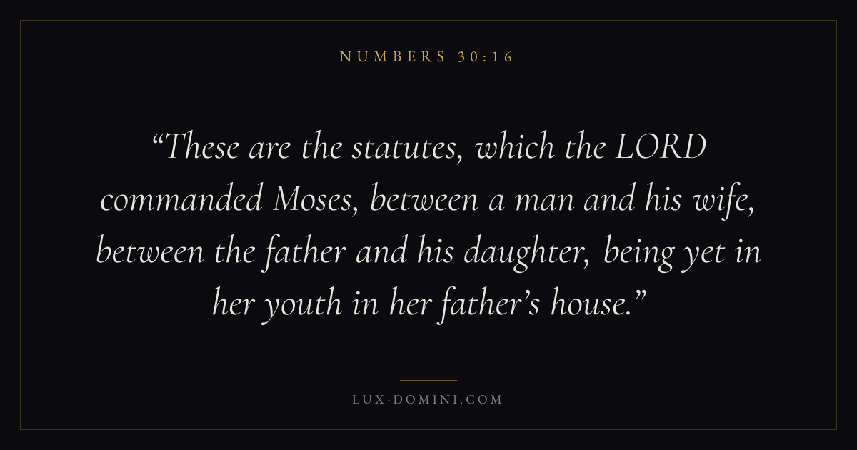 These are the statutes, which the LORD commanded Moses, between a man and his wife, between the father and his daughter, being yet in her youth in her father’s house.