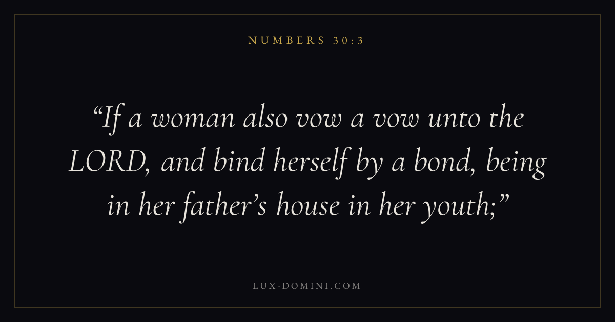 If a woman also vow a vow unto the LORD, and bind herself by a bond, being in her father’s house in her youth;