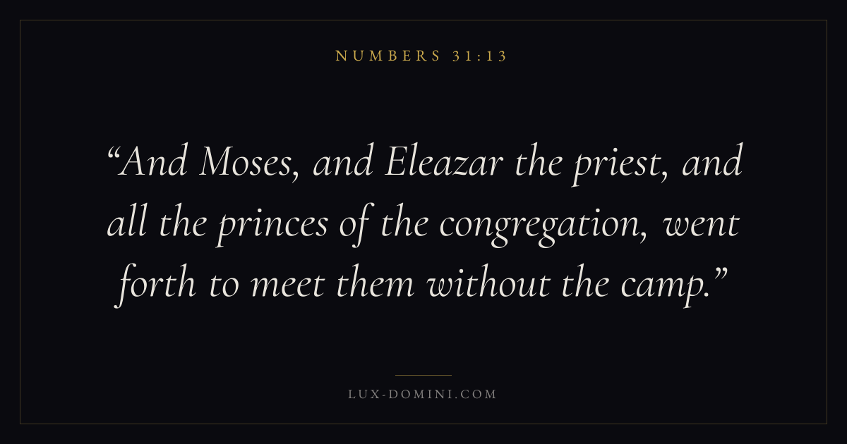And Moses, and Eleazar the priest, and all the princes of the congregation, went forth to meet them without the camp.