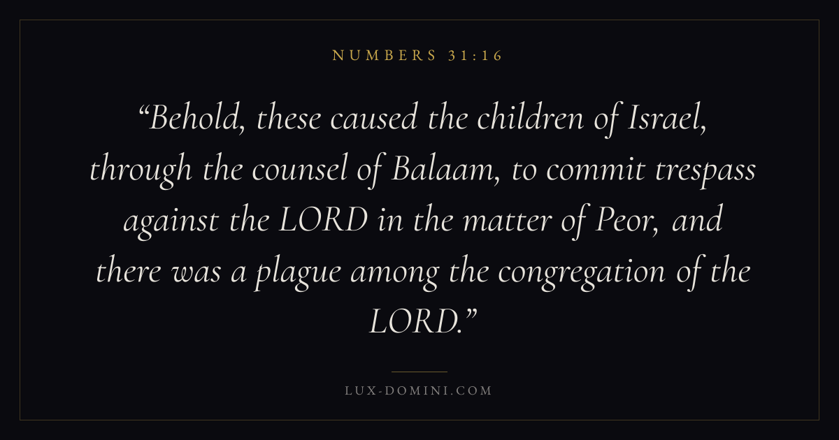 Behold, these caused the children of Israel, through the counsel of Balaam, to commit trespass against the LORD in the matter of Peor, and there was a plague among the congregation of the LORD.