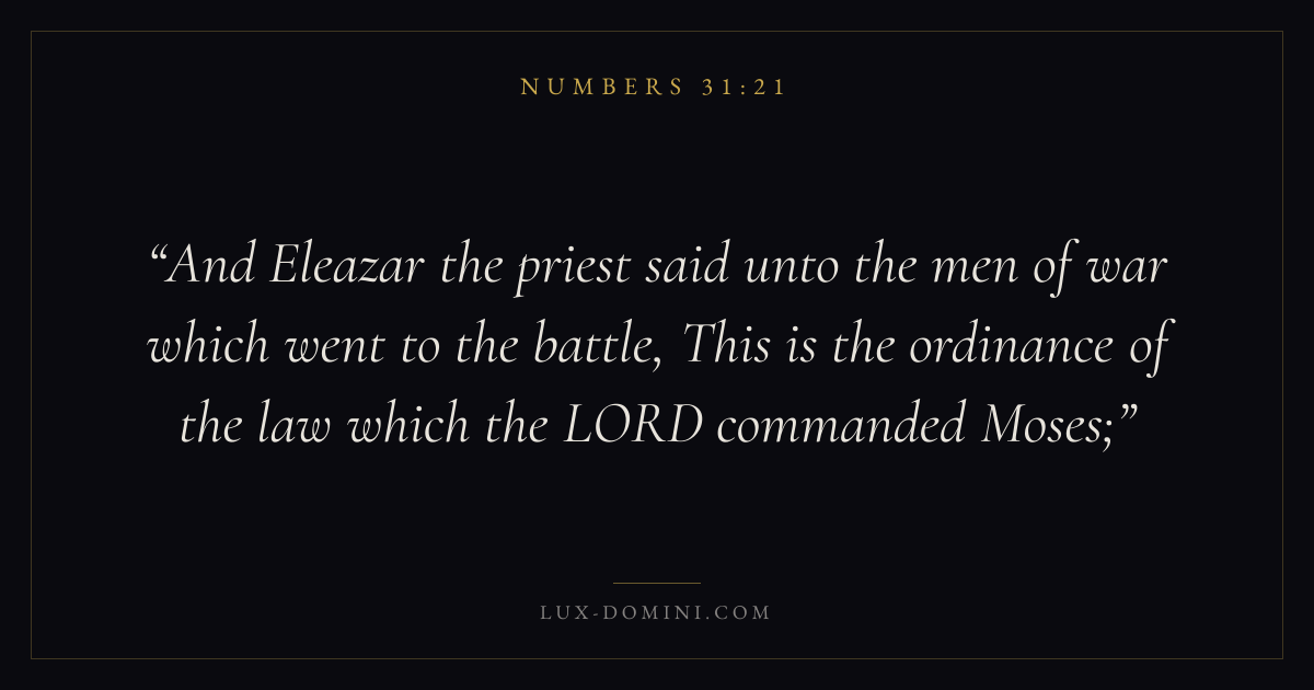 And Eleazar the priest said unto the men of war which went to the battle, This is the ordinance of the law which the LORD commanded Moses;