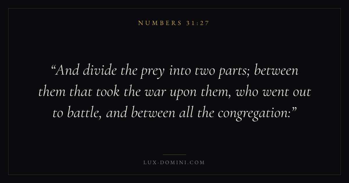 And divide the prey into two parts; between them that took the war upon them, who went out to battle, and between all the congregation: